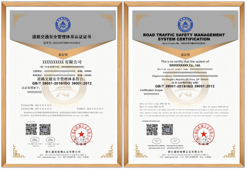 GB/T 39001-2019/ISO 39001:2012 道路交通安全管理體系認證證書(shū)樣本: